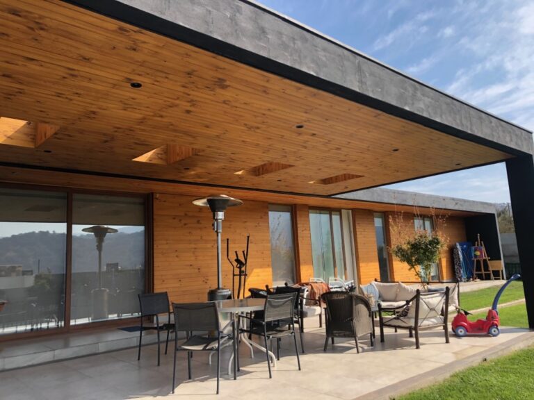 Construcción de espacios exteriores, terrazas, quincho, estacionamiento.