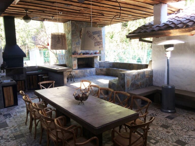 Gran quincho cubierto, piscina + terrazas, gimnasio, pérgolas.